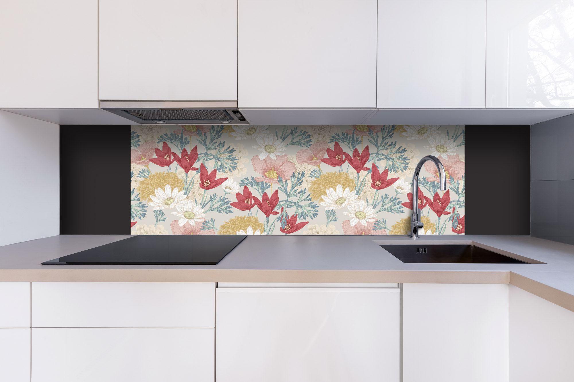 Placă decorativă dibond pentru bucătărie Model floral vintage - 180 x 60 cm