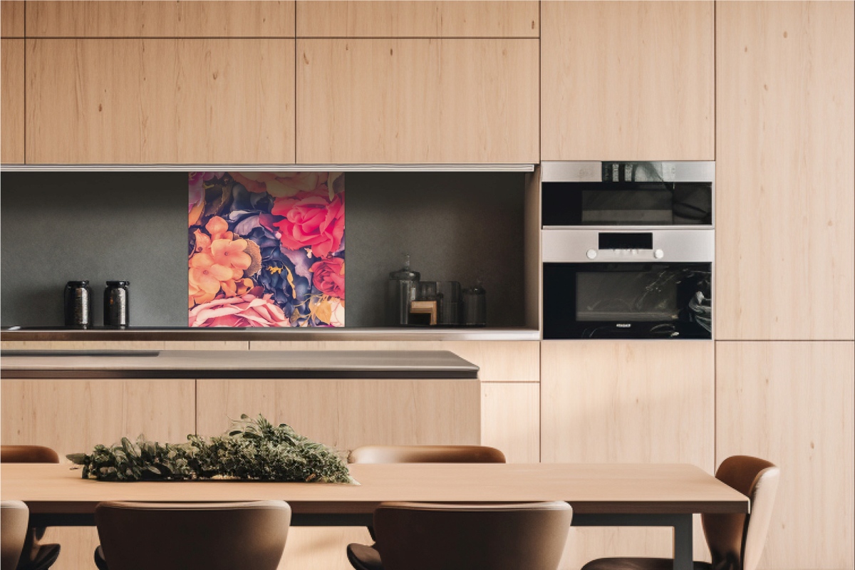 Placă decorativă dibond pentru bucătărie Nătură statică cu flori - 60 x 60 cm