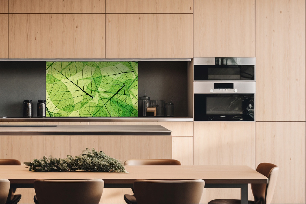 Placă decorativă dibond pentru bucătărie Nevuse de frunze - 100 x 60 cm