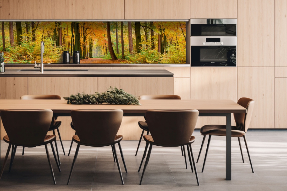 Placă decorativă dibond pentru bucătărie Pădure de toamnă - 260 x 60 cm
