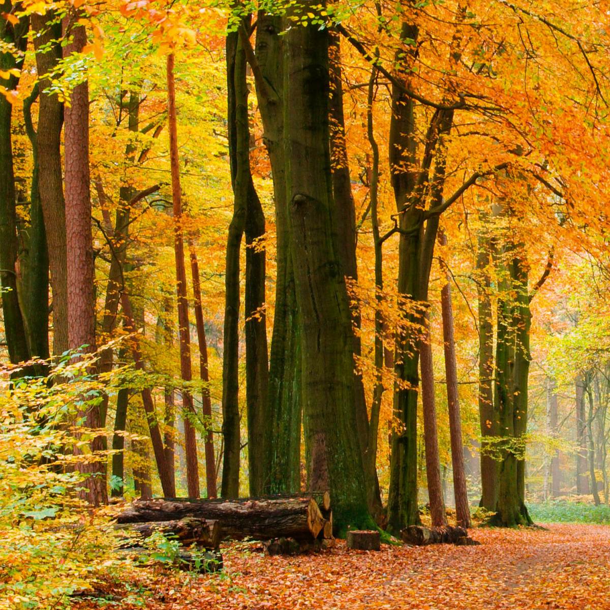 Placă decorativă dibond pentru bucătărie Pădure de toamnă - 60 x 60 cm