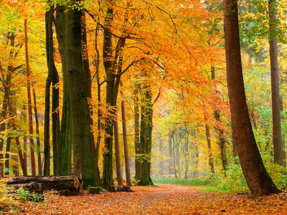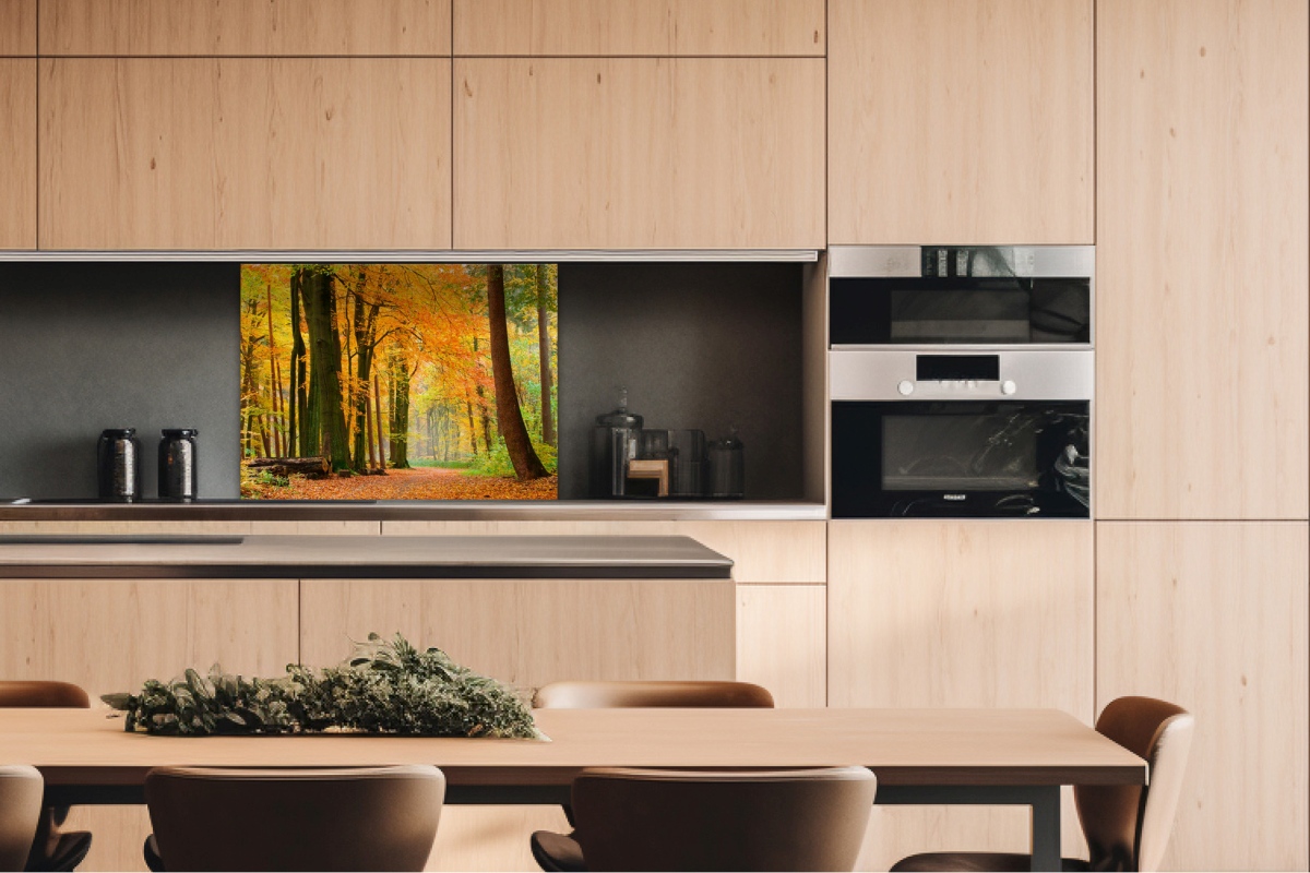 Placă decorativă dibond pentru bucătărie Pădure de toamnă - 80 x 60 cm