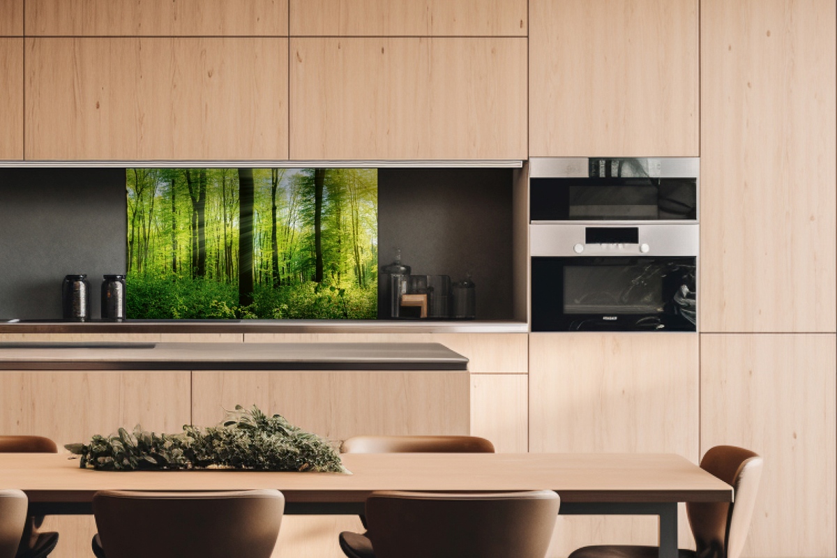 Placă decorativă dibond pentru bucătărie Pădure luxuriantă - 100 x 60 cm