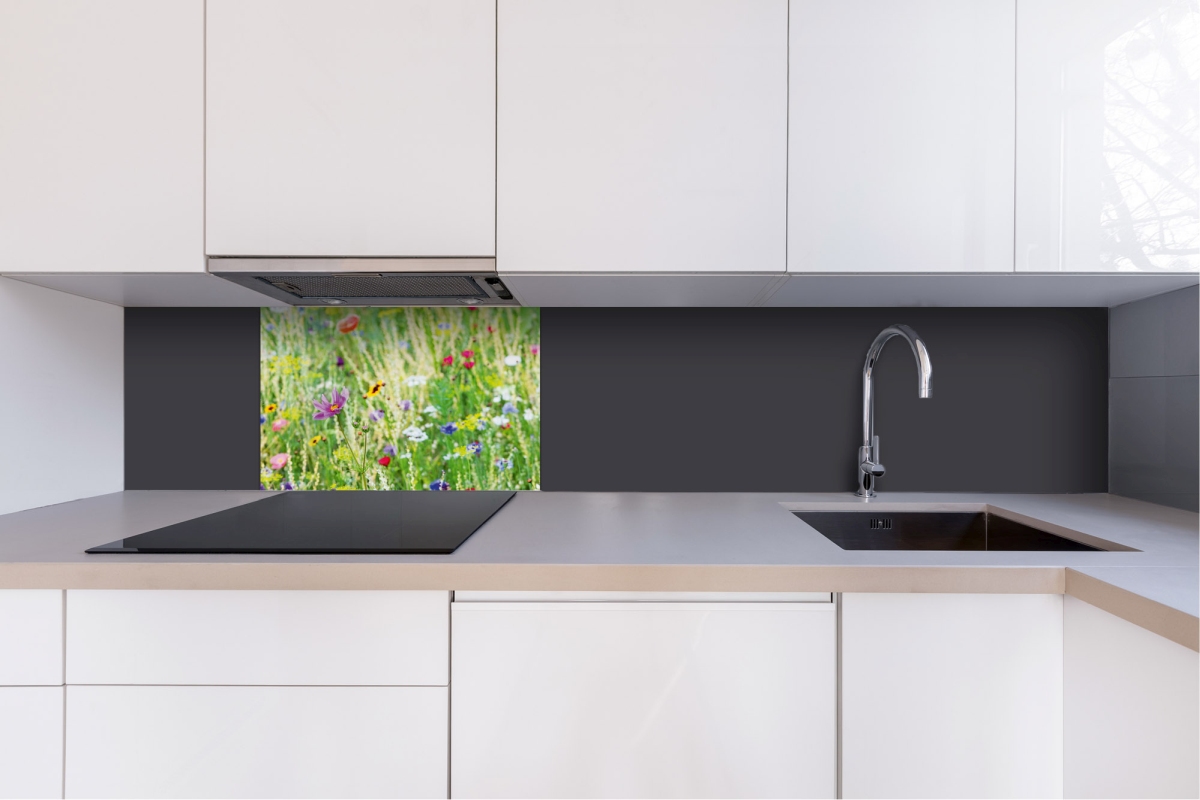 Placă decorativă dibond pentru bucătărie Pajiște cu flori - 60 x 40 cm
