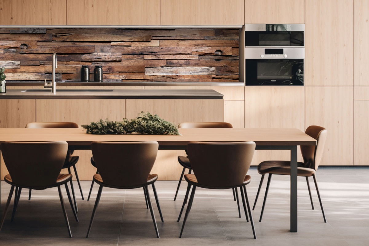 Placă decorativă dibond pentru bucătărie Perete de lemn - 260 x 60 cm
