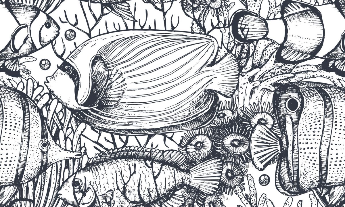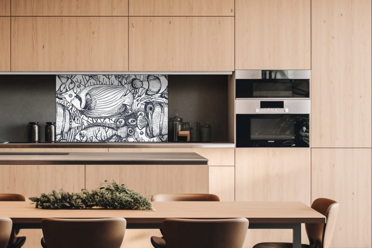 Placă decorativă dibond pentru bucătărie Pește alb-negru - 100 x 60 cm