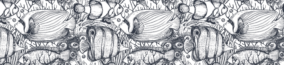 Placă decorativă dibond pentru bucătărie Pește alb-negru - 260 x 60 cm