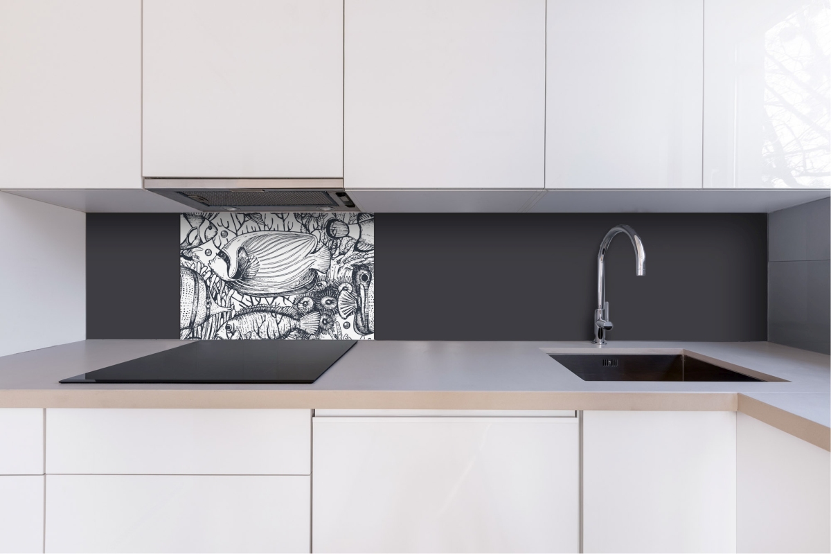 Placă decorativă dibond pentru bucătărie Pește alb-negru - 60 x 40 cm