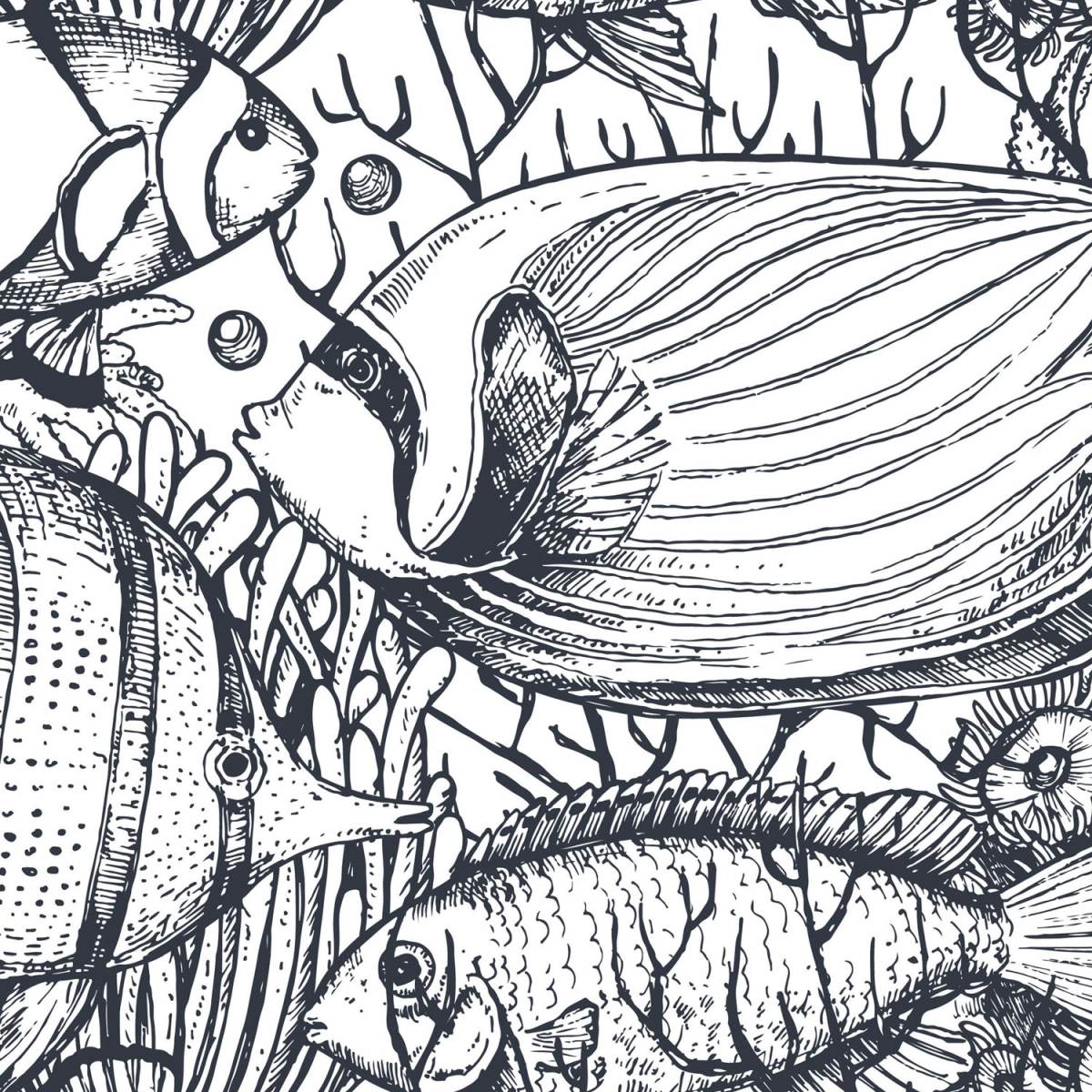 Placă decorativă dibond pentru bucătărie Pește alb-negru - 60 x 60 cm