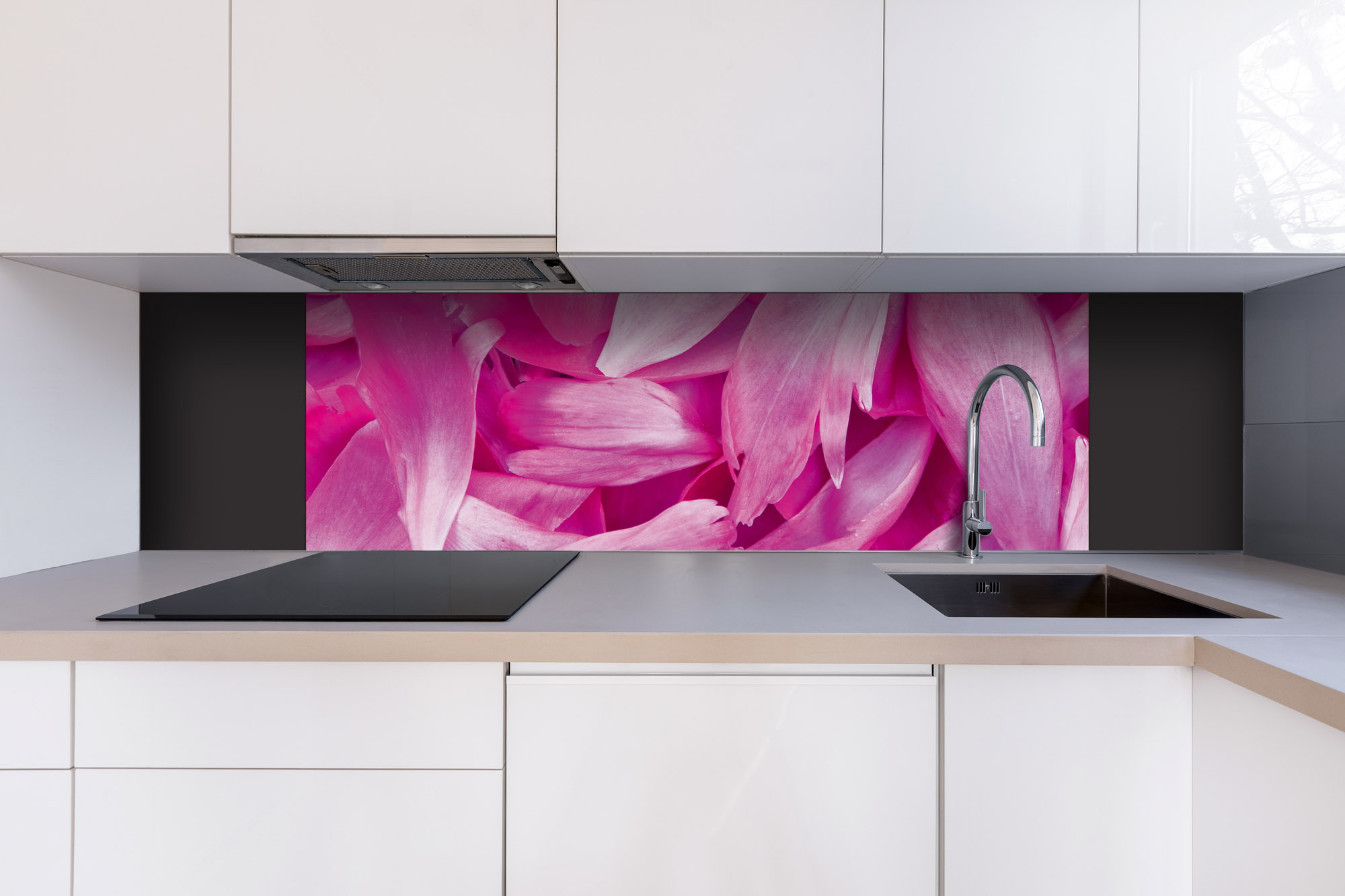 Placă decorativă dibond pentru bucătărie Petale mov - 180 x 60 cm