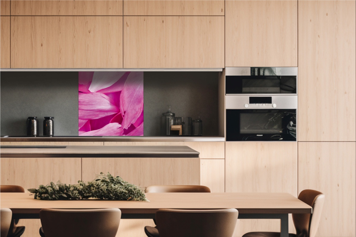 Placă decorativă dibond pentru bucătărie Petale violet - 60 x 60 cm