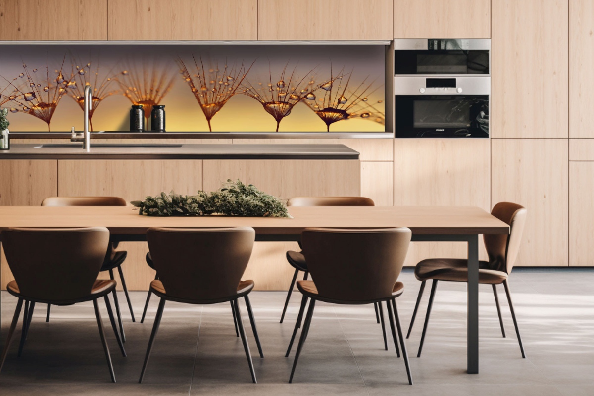 Placă decorativă dibond pentru bucătărie Picături de păpădie - 260 x 60 cm