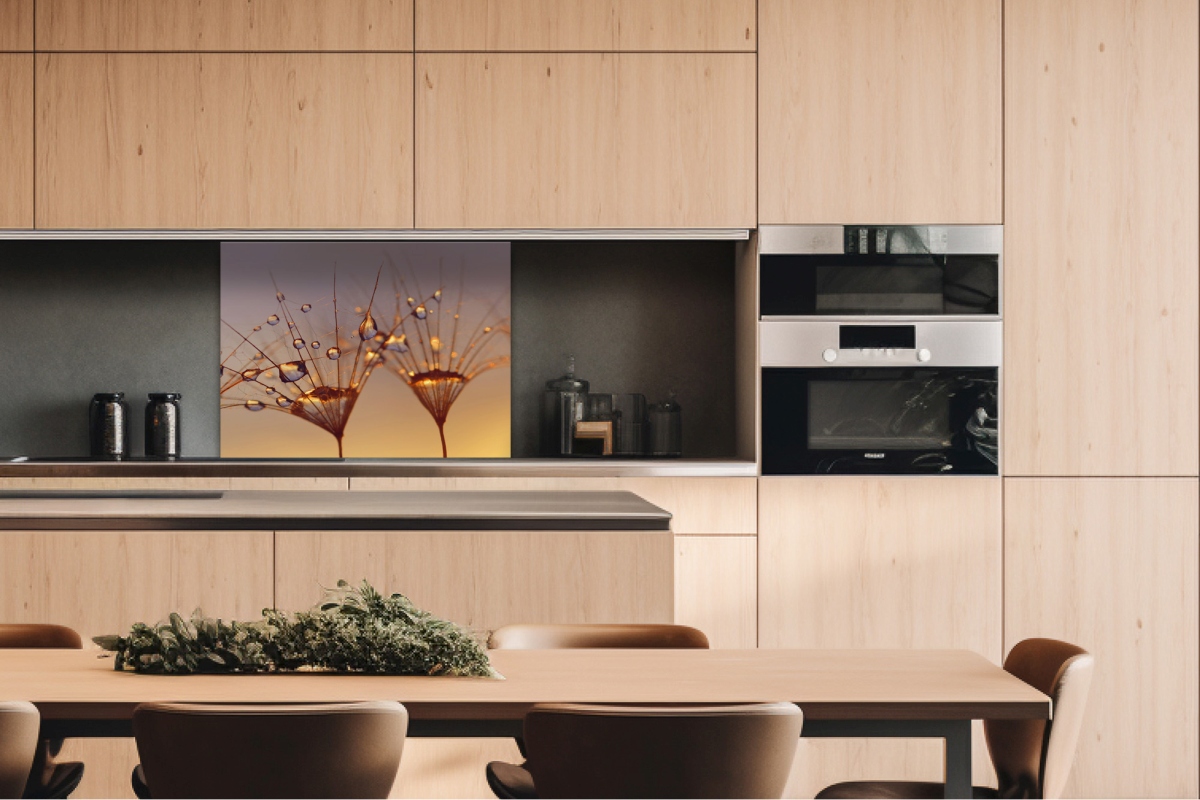 Placă decorativă dibond pentru bucătărie Picături de păpădie - 80 x 60 cm