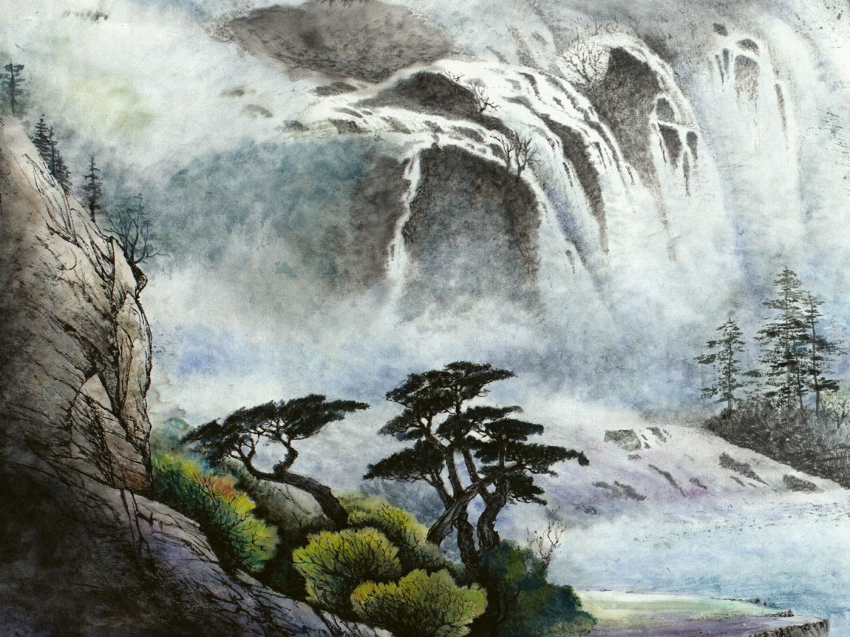 Placă decorativă dibond pentru bucătărie Pictură în cascadă - 80 x 60 cm
