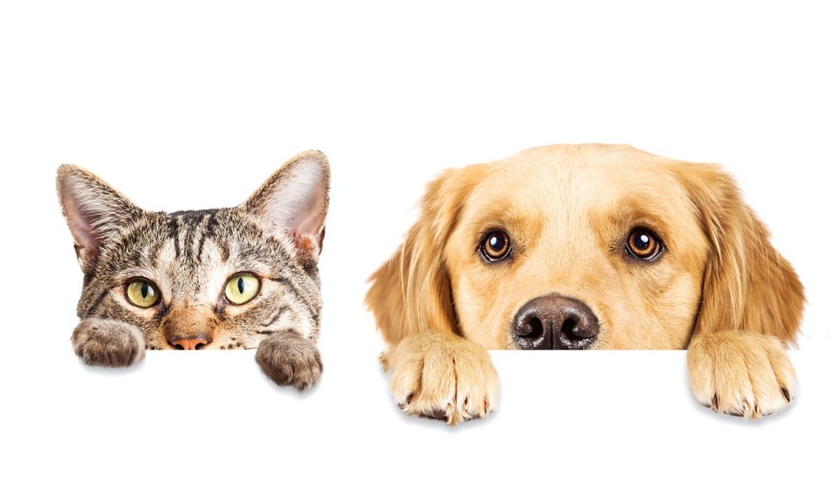 Placă decorativă dibond pentru bucătărie Pisici și câini - 100 x 60 cm