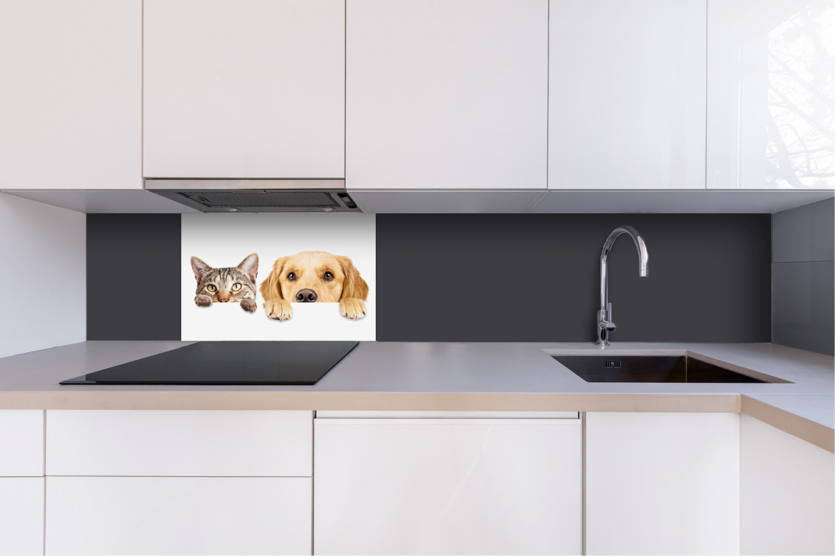 Placă decorativă dibond pentru bucătărie Pisici și câini - 60 x 40 cm