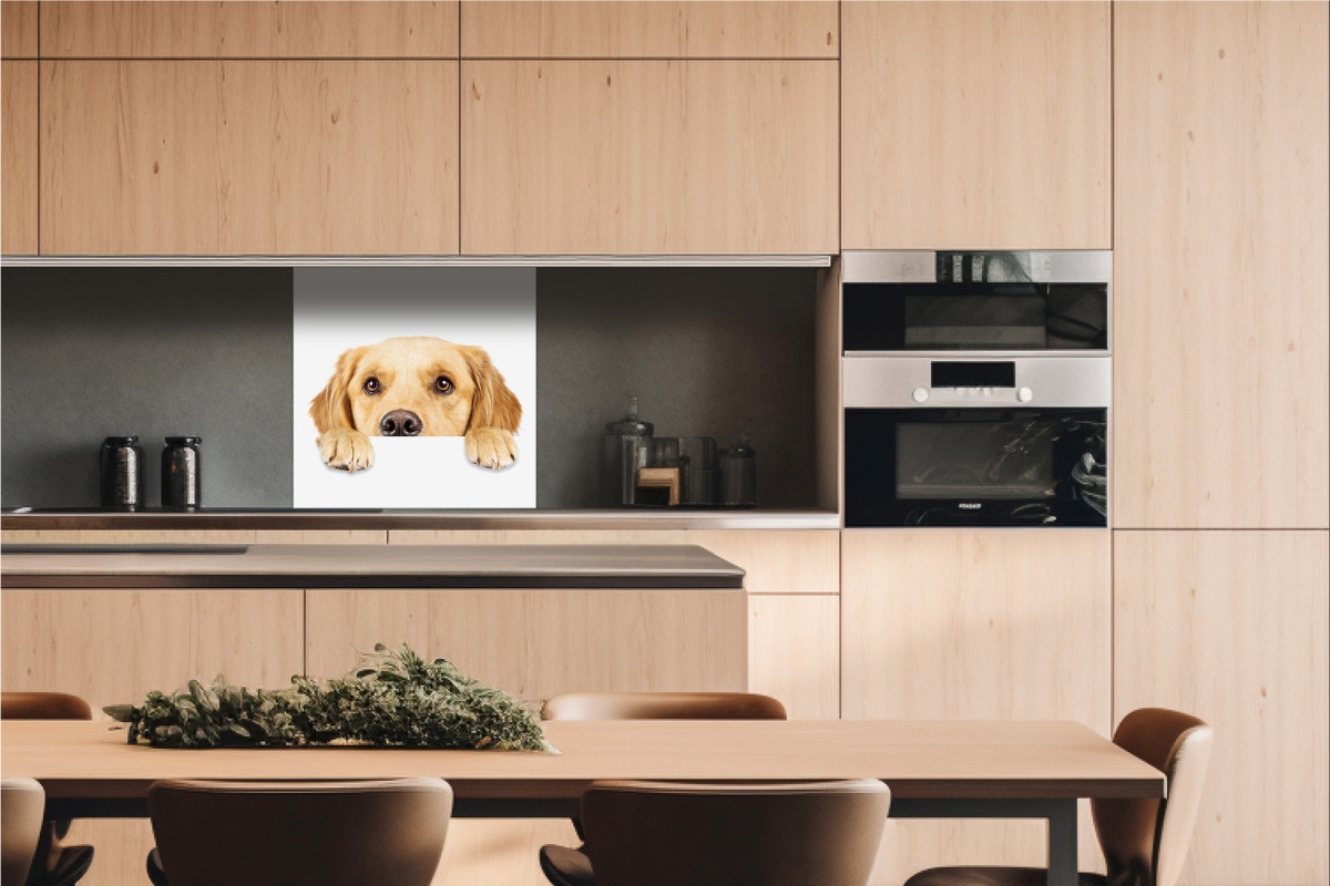 Placă decorativă dibond pentru bucătărie Pisici și câini - 60 x 60 cm