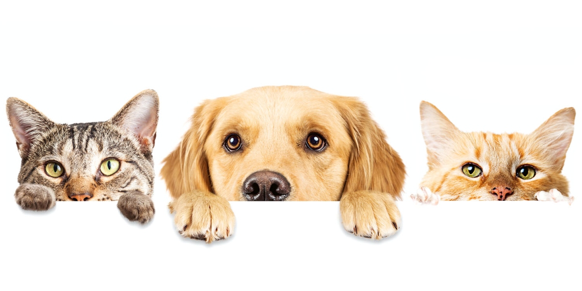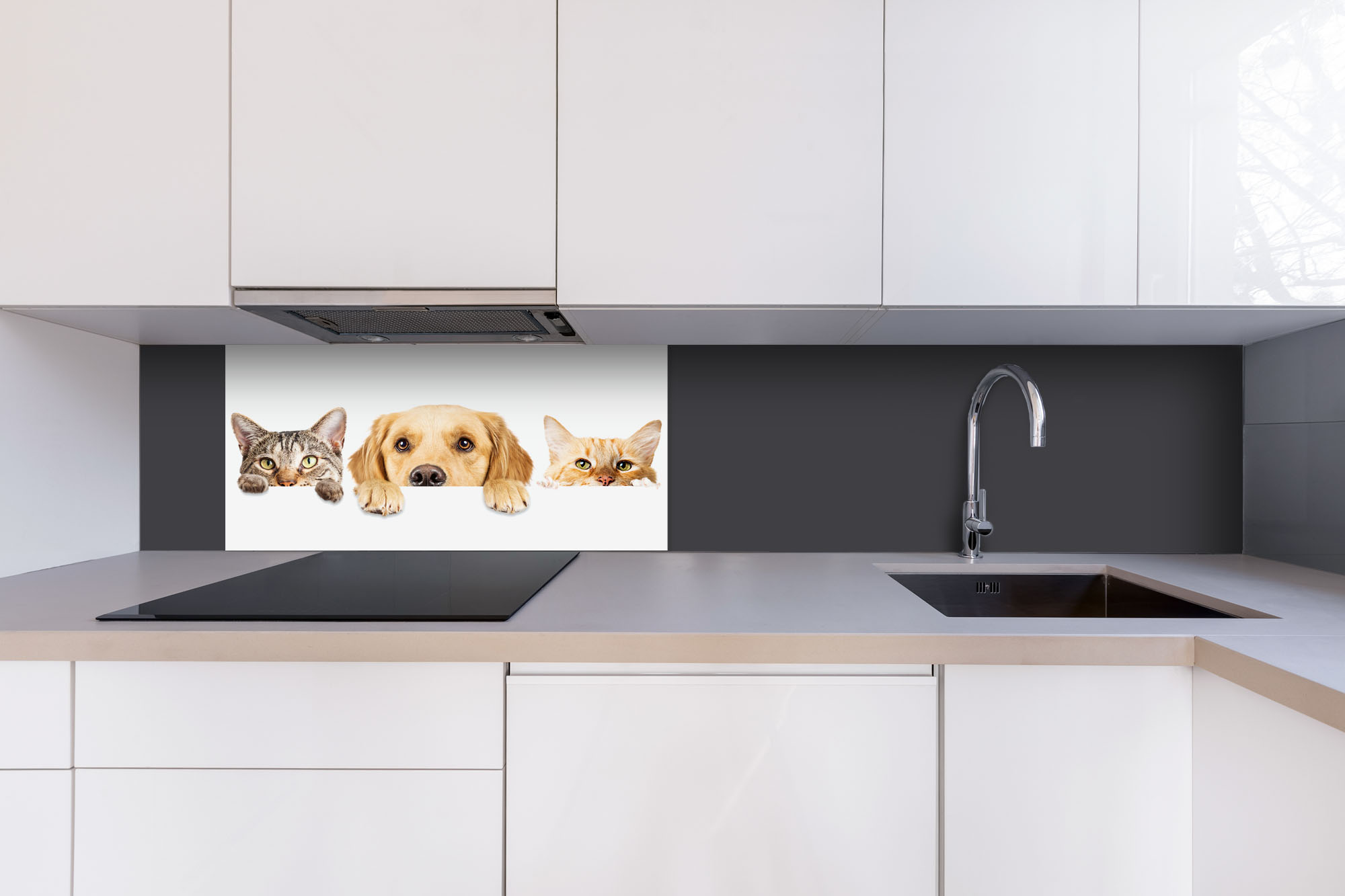 Placă decorativă dibond pentru bucătărie Pisici și câini - 80 x 40 cm