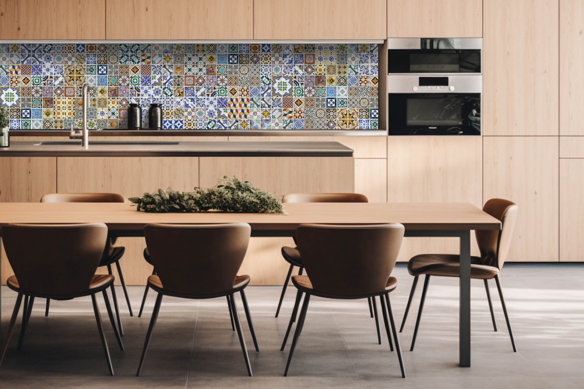 Placă decorativă dibond pentru bucătărie Plăci portugheze - 260 x 60 cm
