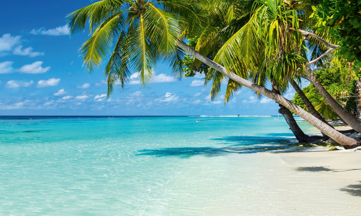 Placă decorativă dibond pentru bucătărie Plajă în paradis - 100 x 60 cm