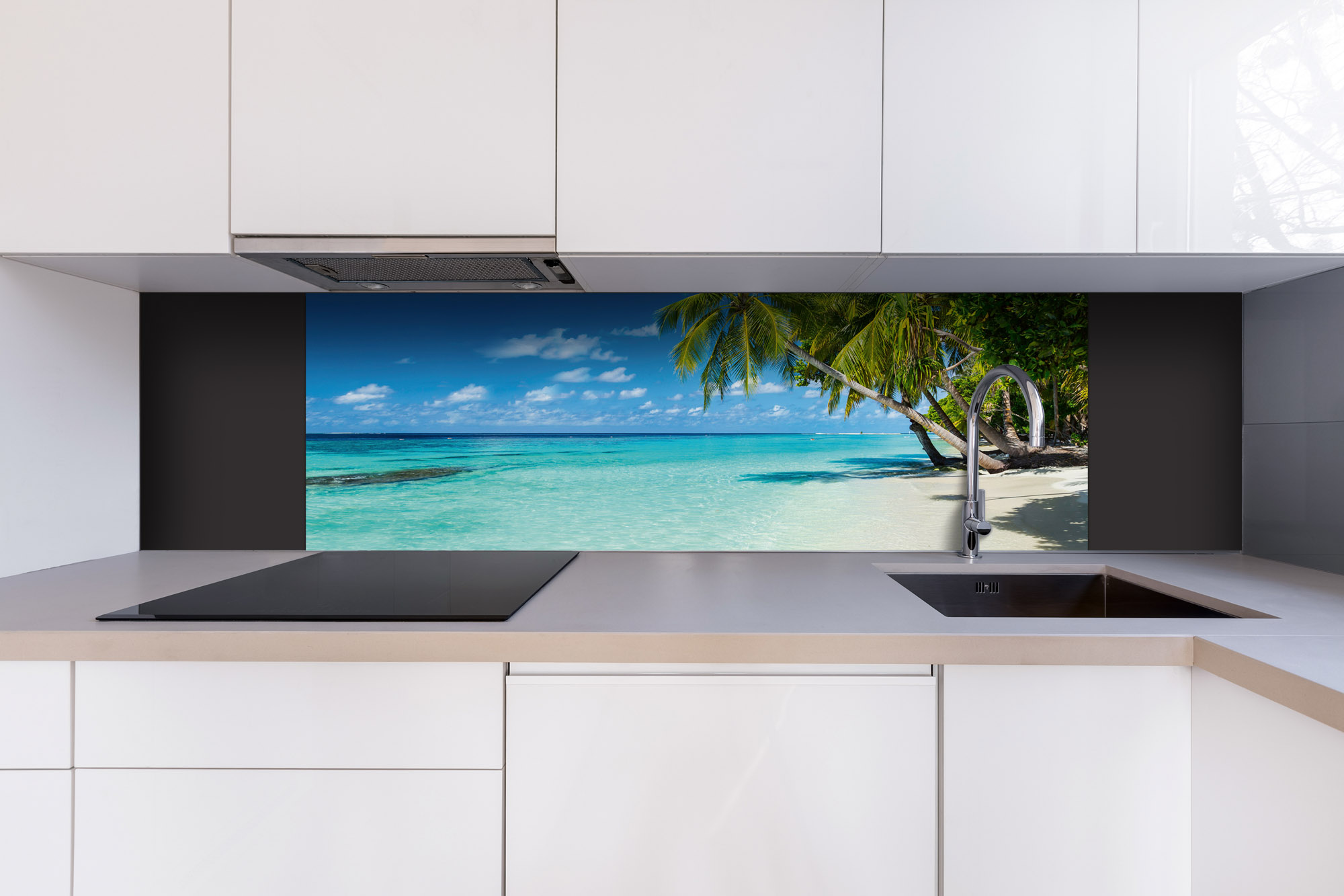 Placă decorativă dibond pentru bucătărie Plajă în paradis - 180 x 60 cm