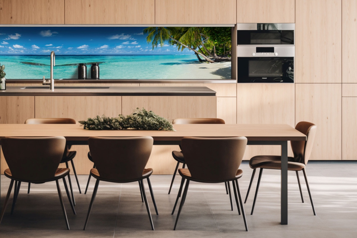 Placă decorativă dibond pentru bucătărie Plajă în paradis - 260 x 60 cm