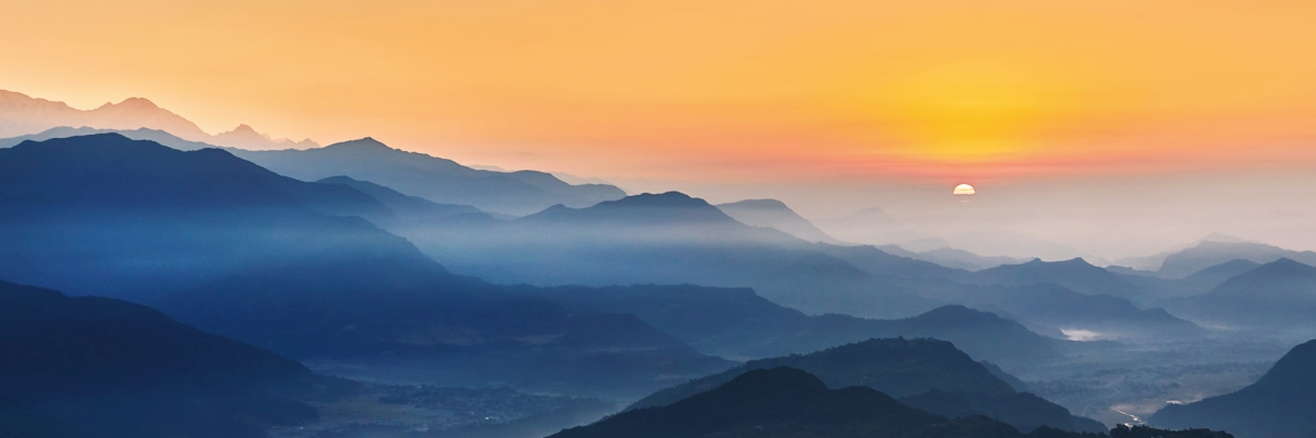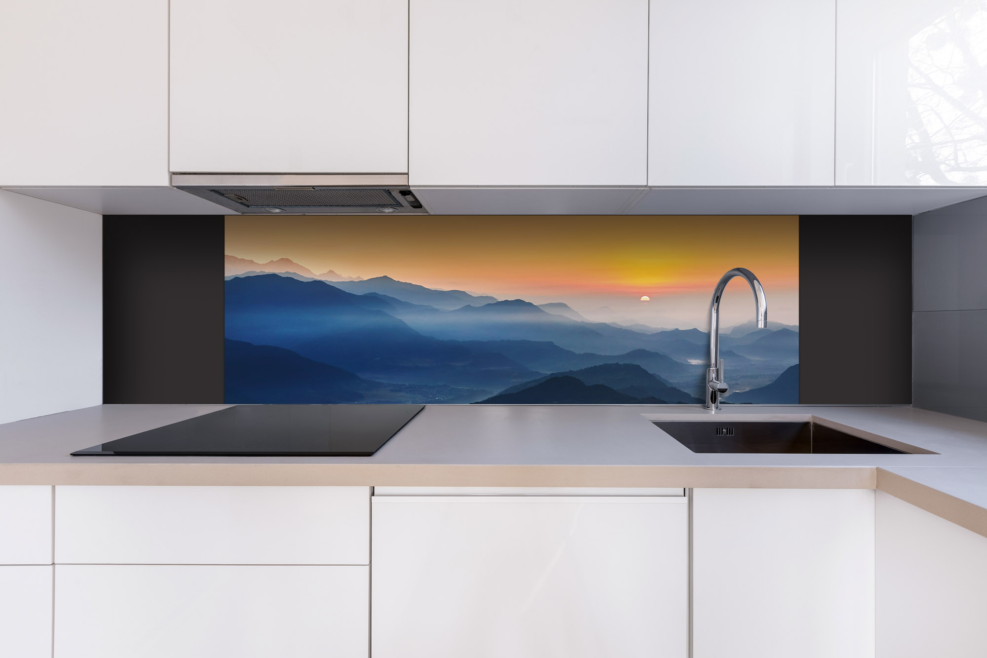 Placă decorativă dibond pentru bucătărie Răsărit de soare în Himalaya - 180 x 60 cm