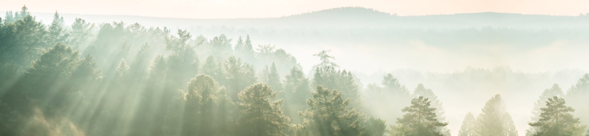 Placă decorativă dibond pentru bucătărie Raze de soare peste pădure - 260 x 60 cm