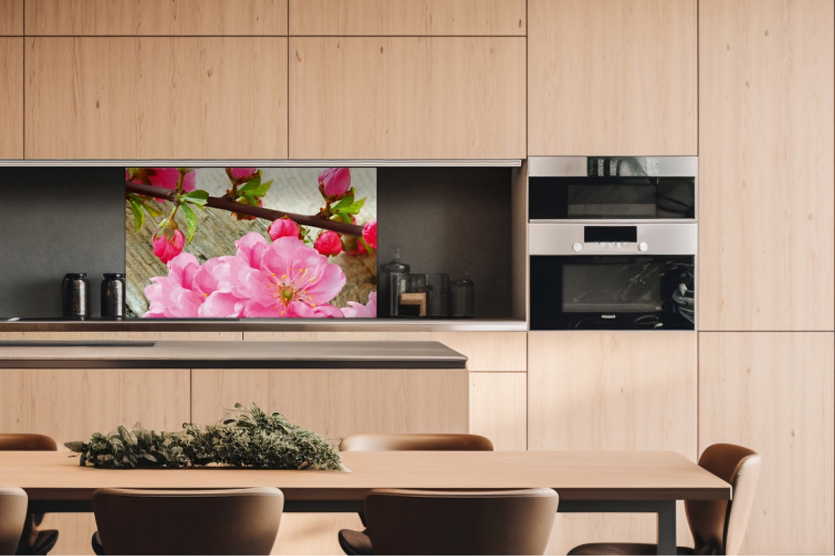 Placă decorativă dibond pentru bucătărie Sakura - 100 x 60 cm
