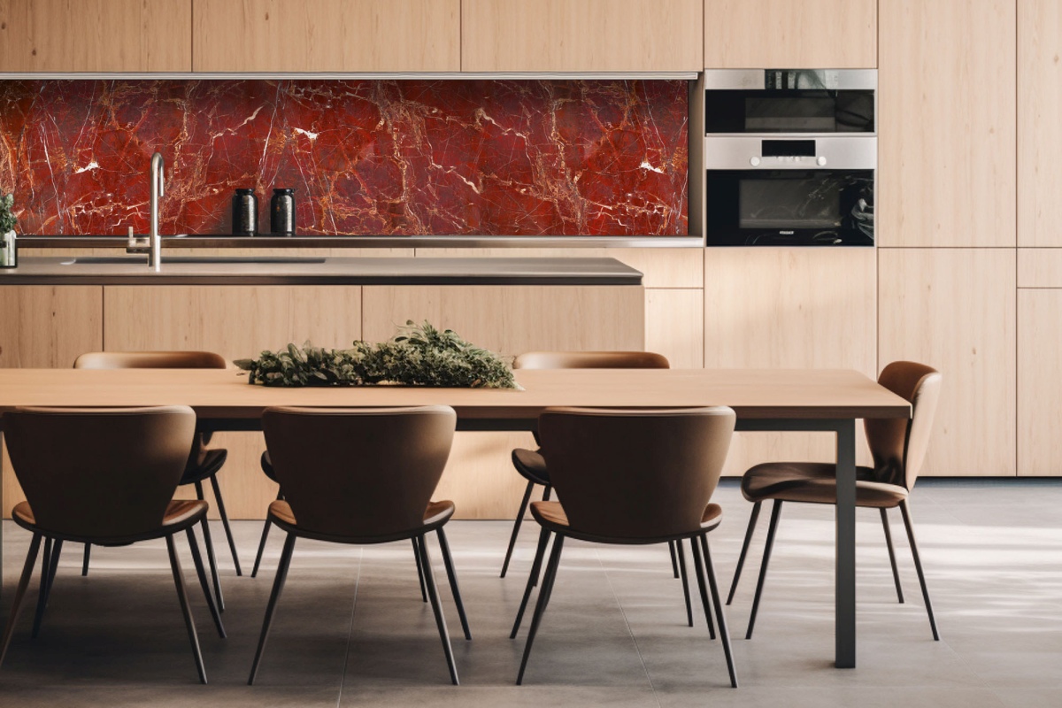 Placă decorativă dibond pentru bucătărie Textură de Marmură Roșie - 260 x 60 cm