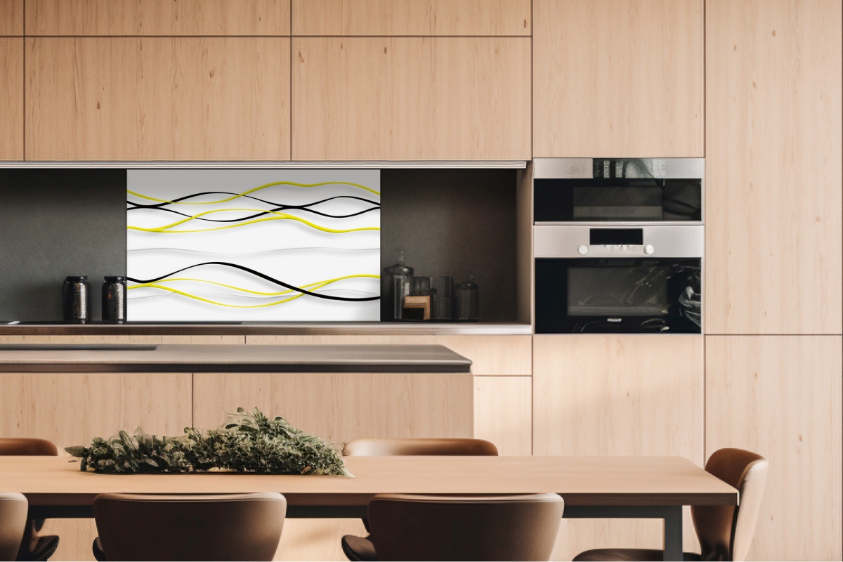 Placă decorativă dibond pentru bucătărie Valuri galbene - 100 x 60 cm