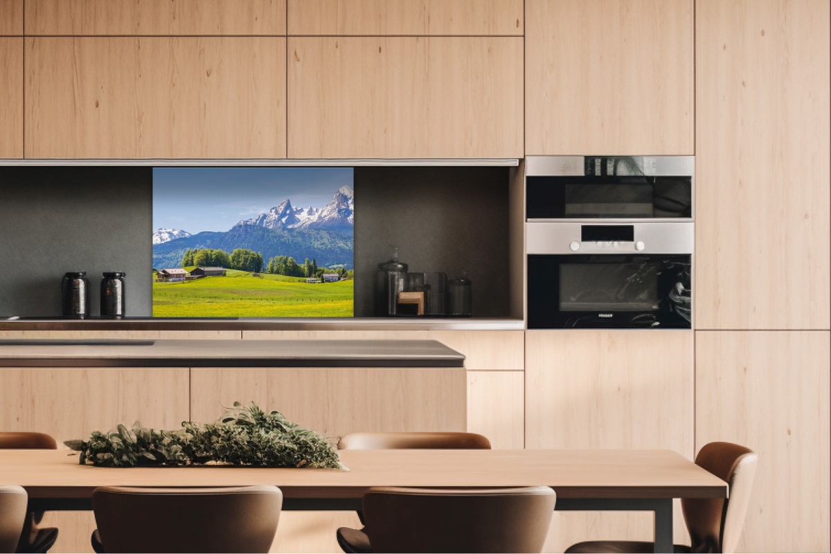 Placă decorativă dibond pentru bucătărie Vedere alpină - 80 x 60 cm