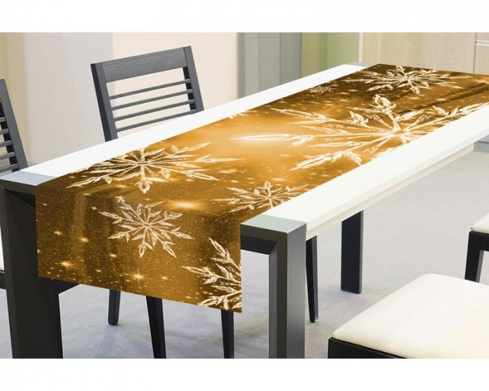 Fețe de masă – Aleasă pentru masă Fulgi de zăpadă aurii 40 x 140 cm