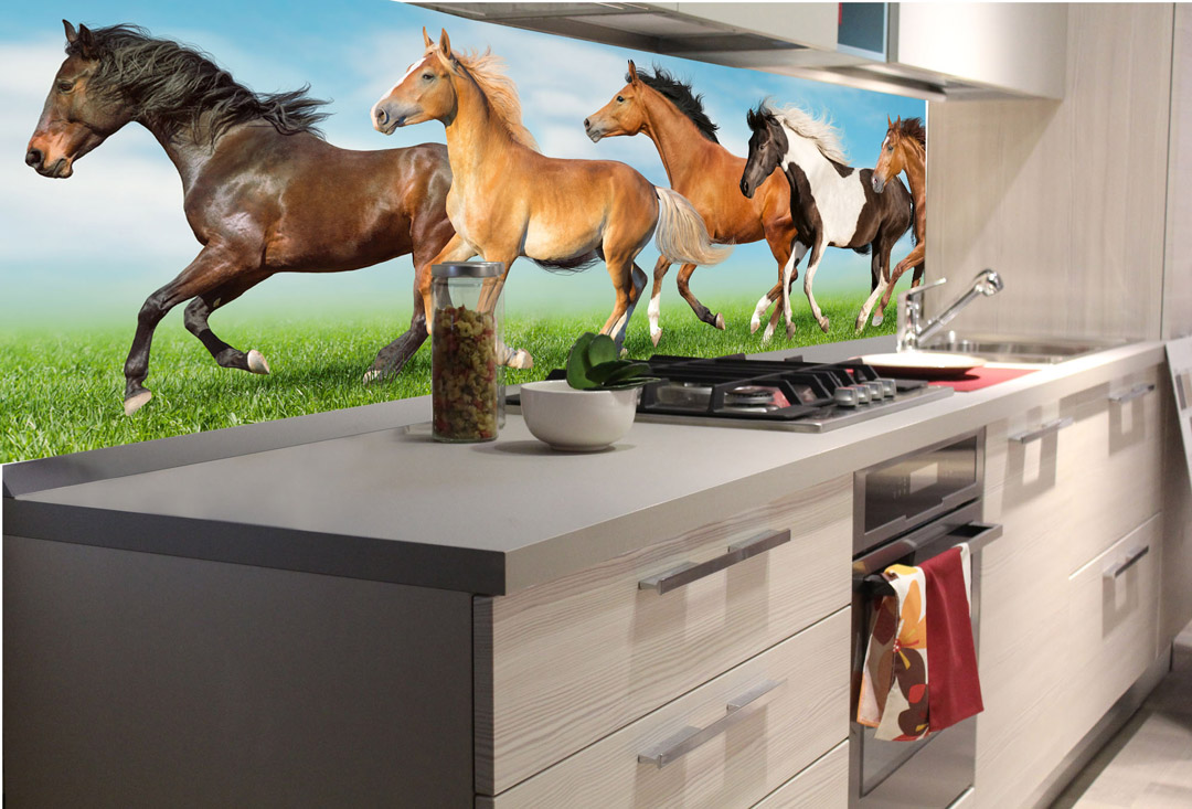 KI-180-111 Fototapet autoadeziv pentru bucătărie – Cai în turmă 180 x 60 cm