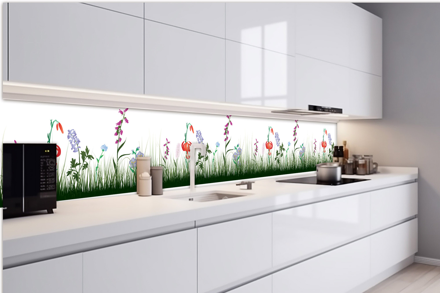 KI-420-182 Fototapet autoadeziv pentru bucătărie – Design de pajiște 420 x 60 cm