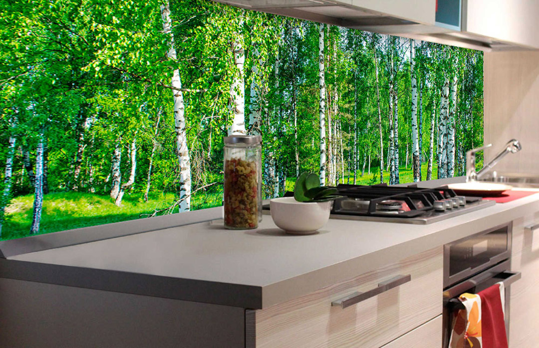 KI-180-044 Fototapet autoadeziv pentru bucătărie – Dumbravă de mesteceni 180 x 60 cm
