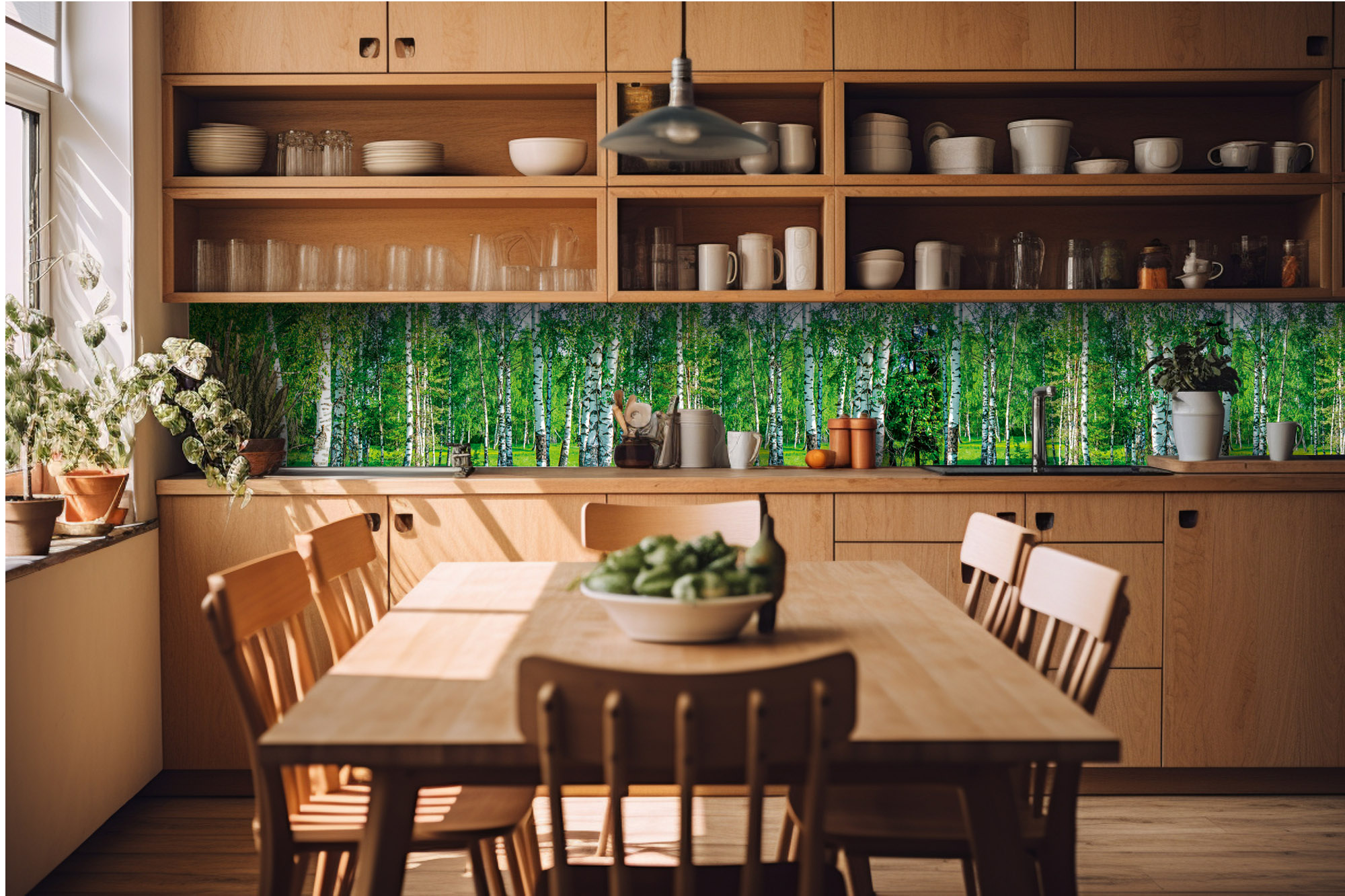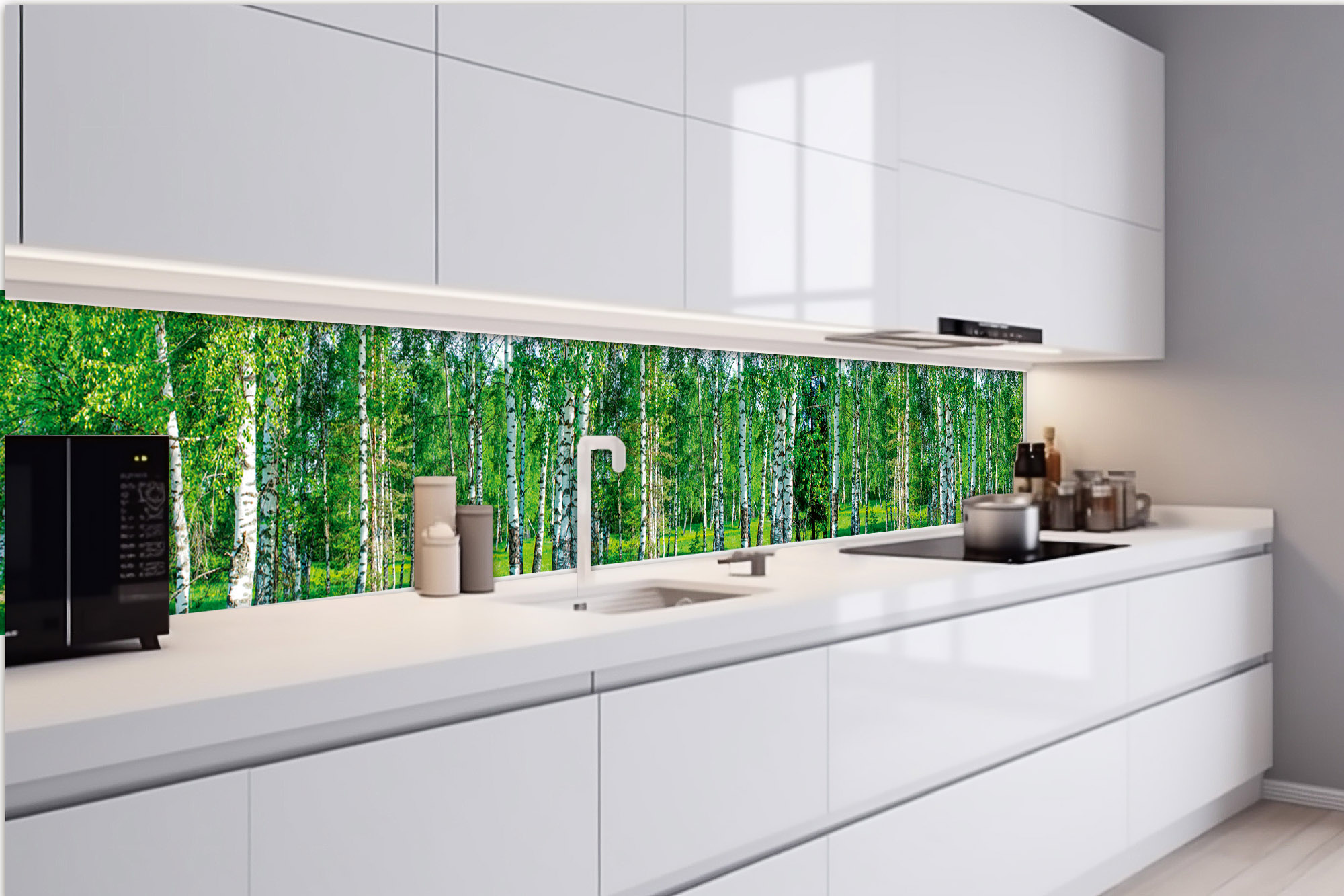 KI-420-044 Fototapet autoadeziv pentru bucătărie – Dumbravă de mesteceni 420 x 60 cm