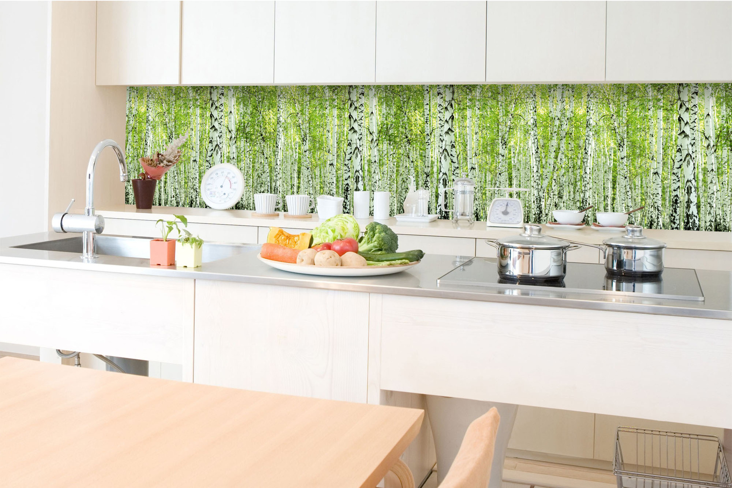 KI-350-193 Fototapet autoadeziv pentru bucătărie – Dumbravă de mesteceni de primăvară 350 x 60 cm