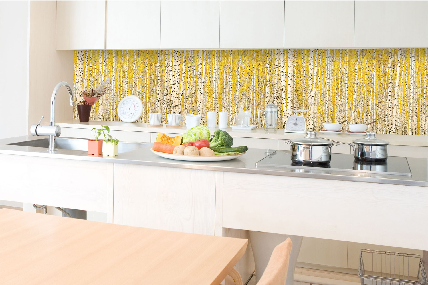 KI-350-197 Fototapet autoadeziv pentru bucătărie – Dumbravă de mesteceni galbeni 350 x 60 cm