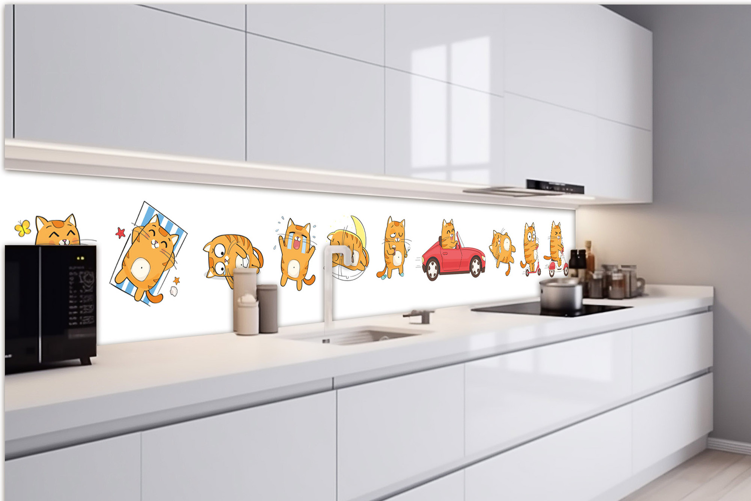 KI-420-184 Fototapet autoadeziv pentru bucătărie – Emoții de pisică 420 x 60 cm