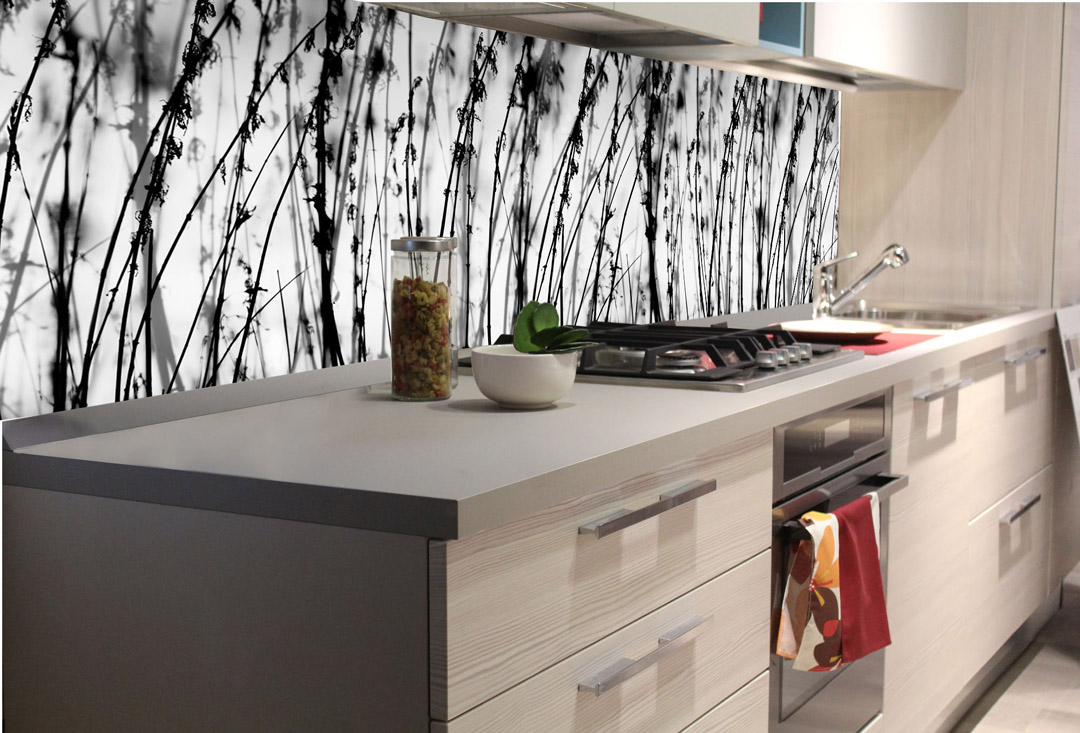 KI-180-137 Fototapet autoadeziv pentru bucătărie – Iarbă alb-negru 180 x 60 cm