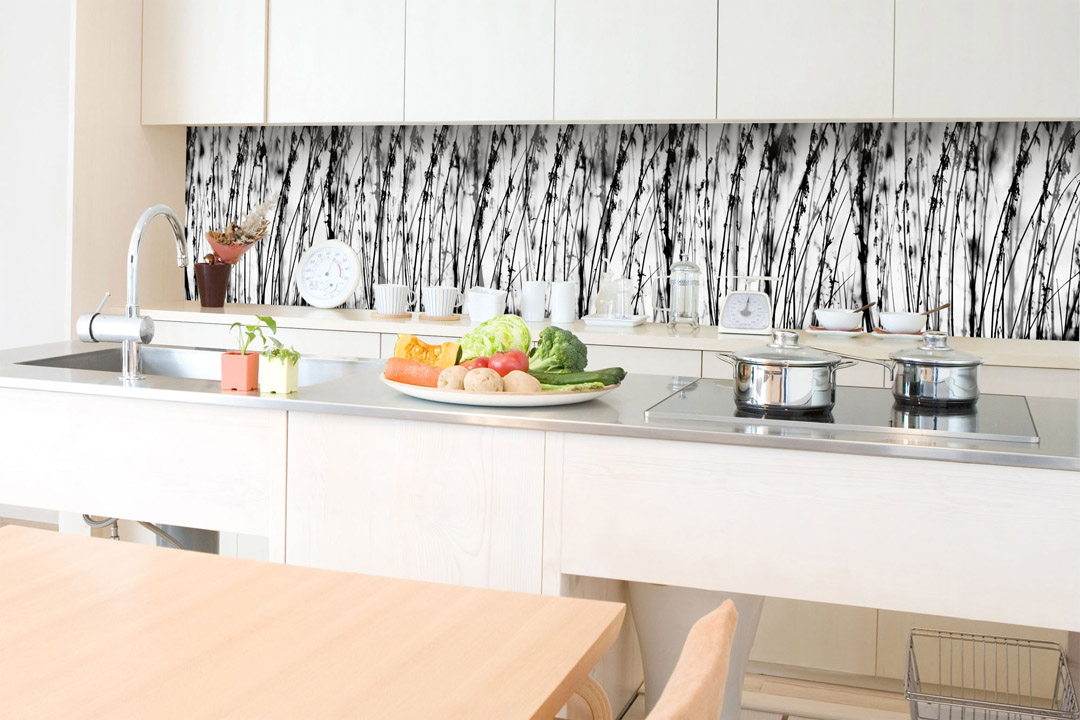 KI-350-137 Fototapet autoadeziv pentru bucătărie – Iarbă alb-negru 350 x 60 cm