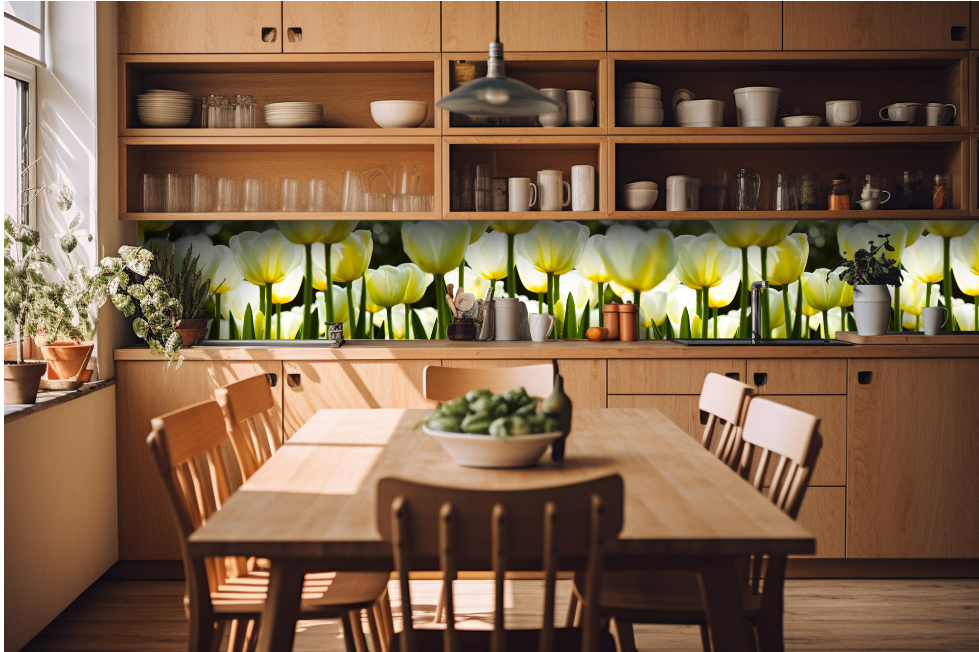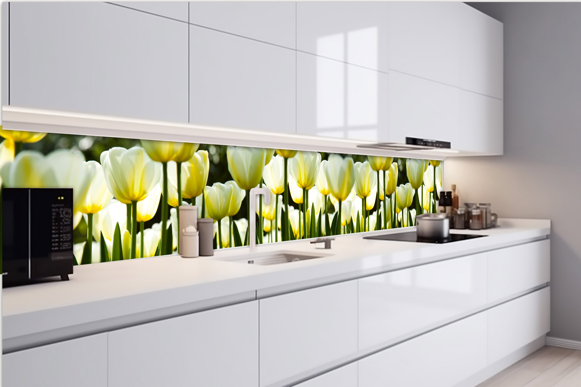 KI-420-009 Fototapet autoadeziv pentru bucătărie – Lalele albe 420 x 60 cm