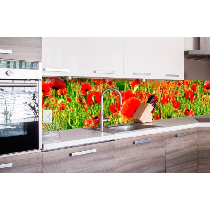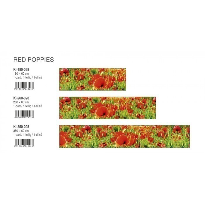 KI-260-028 Fototapet autoadeziv pentru bucătărie – Mac roșii 260 x 60 cm