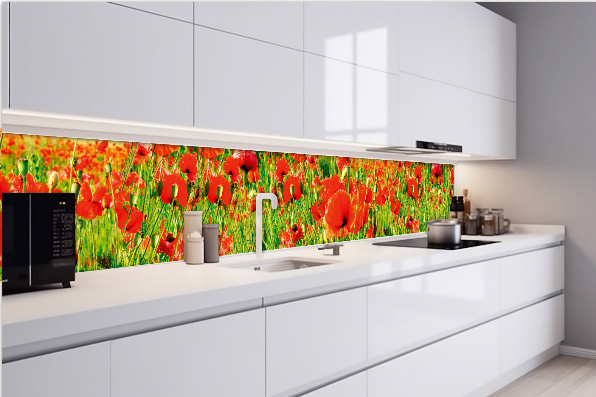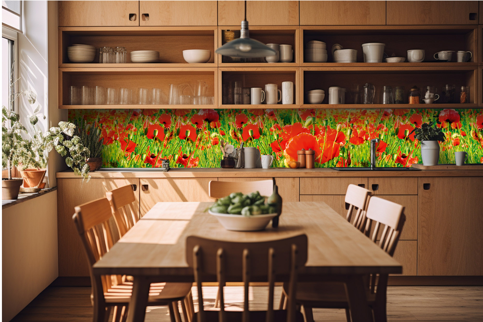 KI-420-028 Fototapet autoadeziv pentru bucătărie – Mac roșu 420 x 60 cm