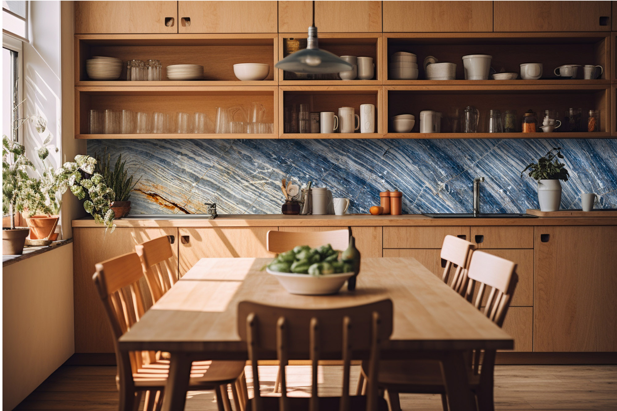Fototapetele autoadezive pentru bucătărie cu motive de natură, pietre prețioase sau abstracte oferă bucătăriei dvs. nu doar un aspect modern care luminează întregul spațiu, ci și fac momentele prețioase petrecute aici cu familia sau prietenii mai plăcute. Stickerele pentru bucătărie DIMEX LINE se remarcă prin calitate superioară.