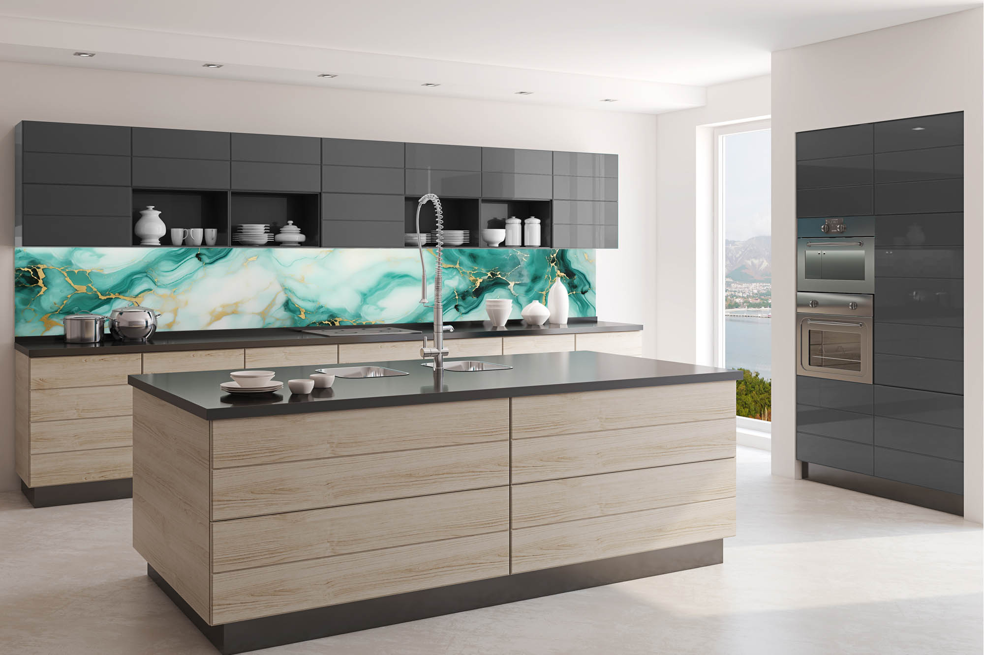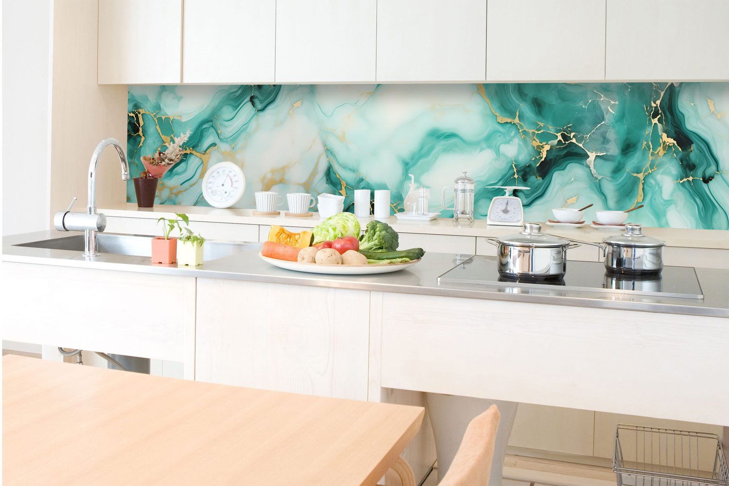 KI-350-208 Fototapet autoadeziv pentru bucătărie – Marmură de smarald 350 x 60 cm
