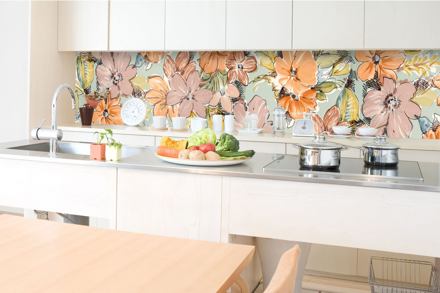 KI-350-215 Fototapet autoadeziv pentru bucătărie – Model floral colorat 350 x 60 cm