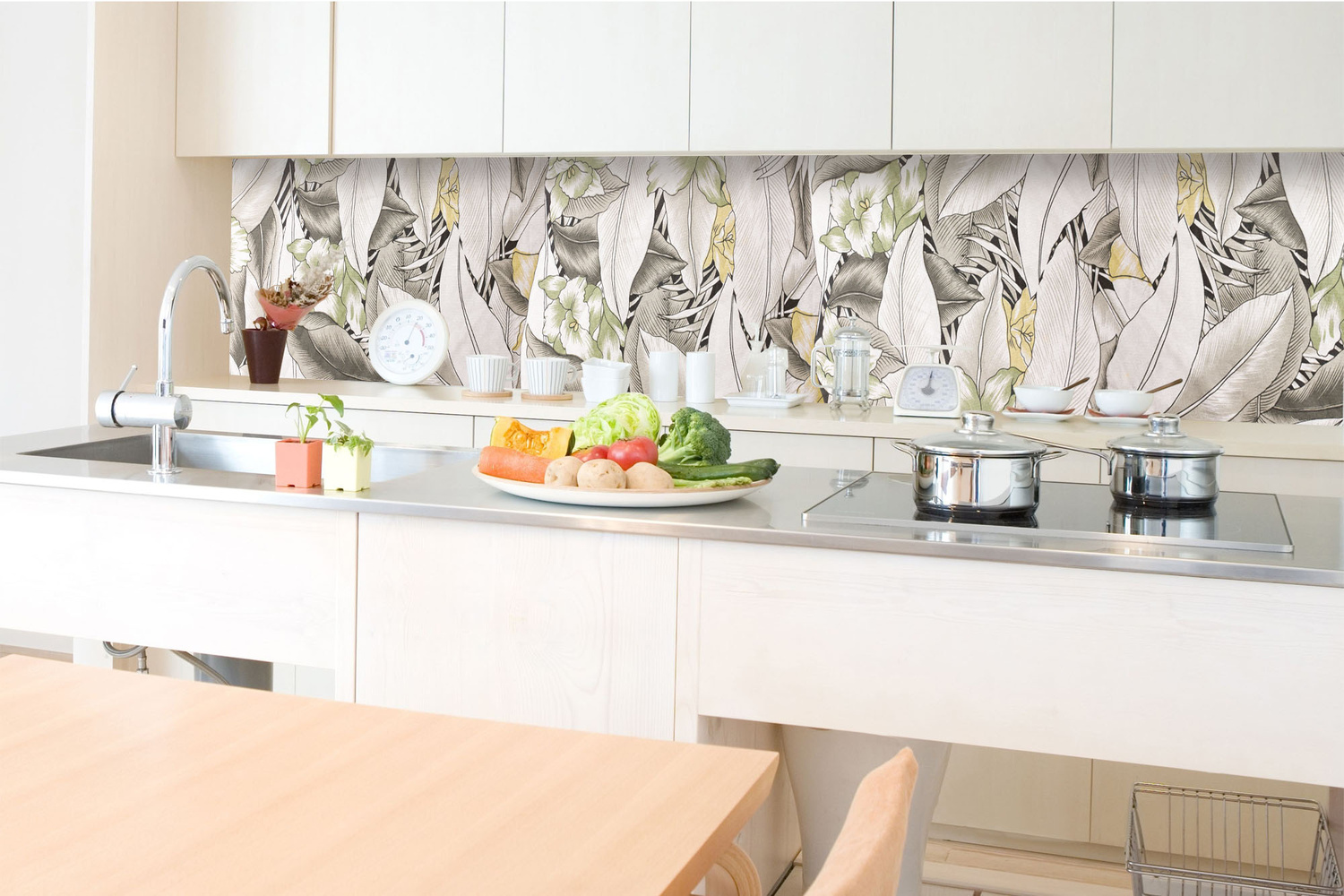 KI-350-220 Fototapet autoadeziv pentru bucătărie – Model floral de design 350 x 60 cm