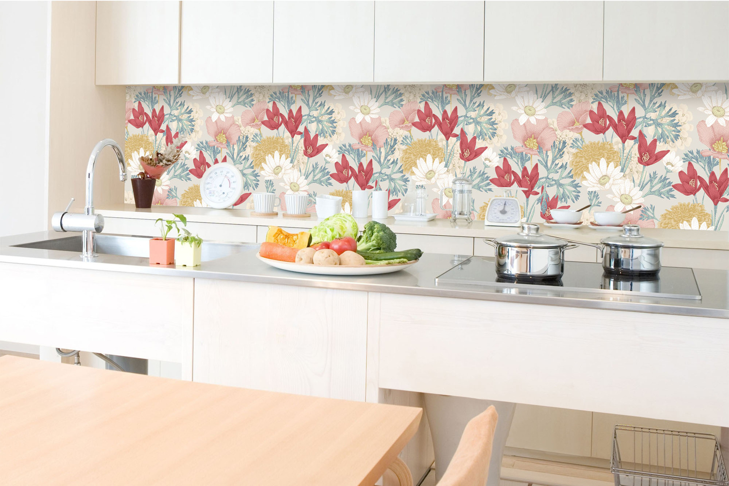 KI-350-216 Fototapet autoadeziv pentru bucătărie – Model floral vintage 350 x 60 cm